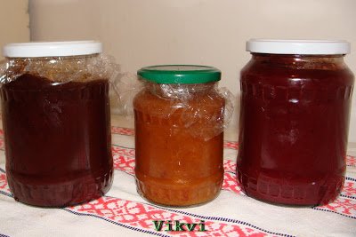 Az idén sok volt a gyümölcs szerencsére, lehetett eltenni bőven. Lett befőtt, lekvár, dzsem és még öntet is de ez nem tudom, hogy fog muzsikálni, mert nem tettem bele tartósítót igaz csak 4 üveg készült belőle. A befőzés általában úgy zajlik nálunk, én adom a munka erejét, a mamáim vagy anyukám az észt. Ezt így, ezt úgy, én meg szépen jegyzetelek a füzetecskémbe, -ne olyan gyorsan, mert nem tudok így írni – ők meg diktálnak, közben hámozok, darabolok, de leginkább tanulok.