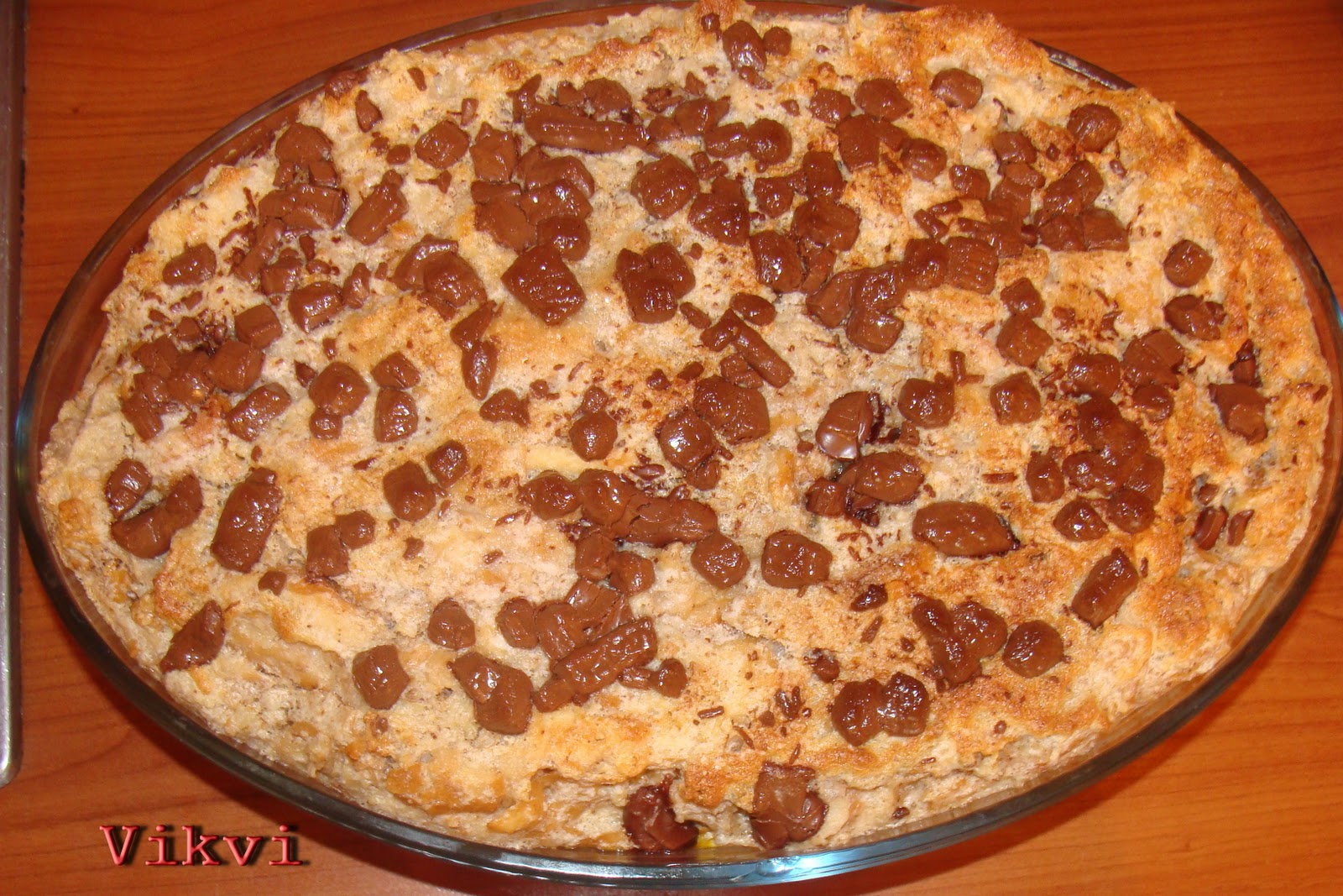 A jénait kivajazom és félreteszem. A kifliket felkarikázom és egy nagy tálba teszem. 1 liter tejet felmelegítek, lehet bele tenni vaníliát is. A tojásokat ketté választom a sárgáját kikeverem a cukorral. Majd öntök hozzá a tejből. A kiflikre öntöm a tejet elkeverem, majd a sárgájás cukros tejet is rálocsolom. Hozzáadom a kétféle diót. Felverem a fehérjét és óvatosan hozzáforgatom. Megszórom a csokival. Közepesen meleg sütőben sütöm, 25-30 percig. akkor jó ha szépen feljön. Hagyjuk a sütőben hűlni és akkor nem fog összeesni.