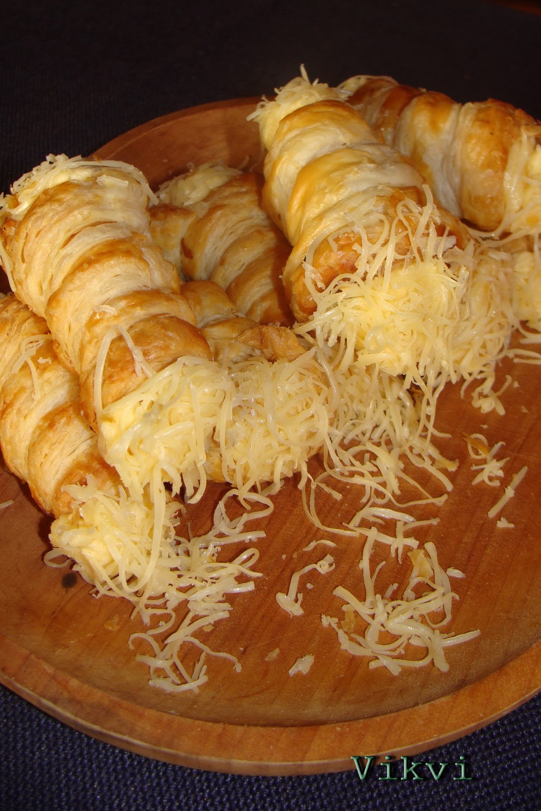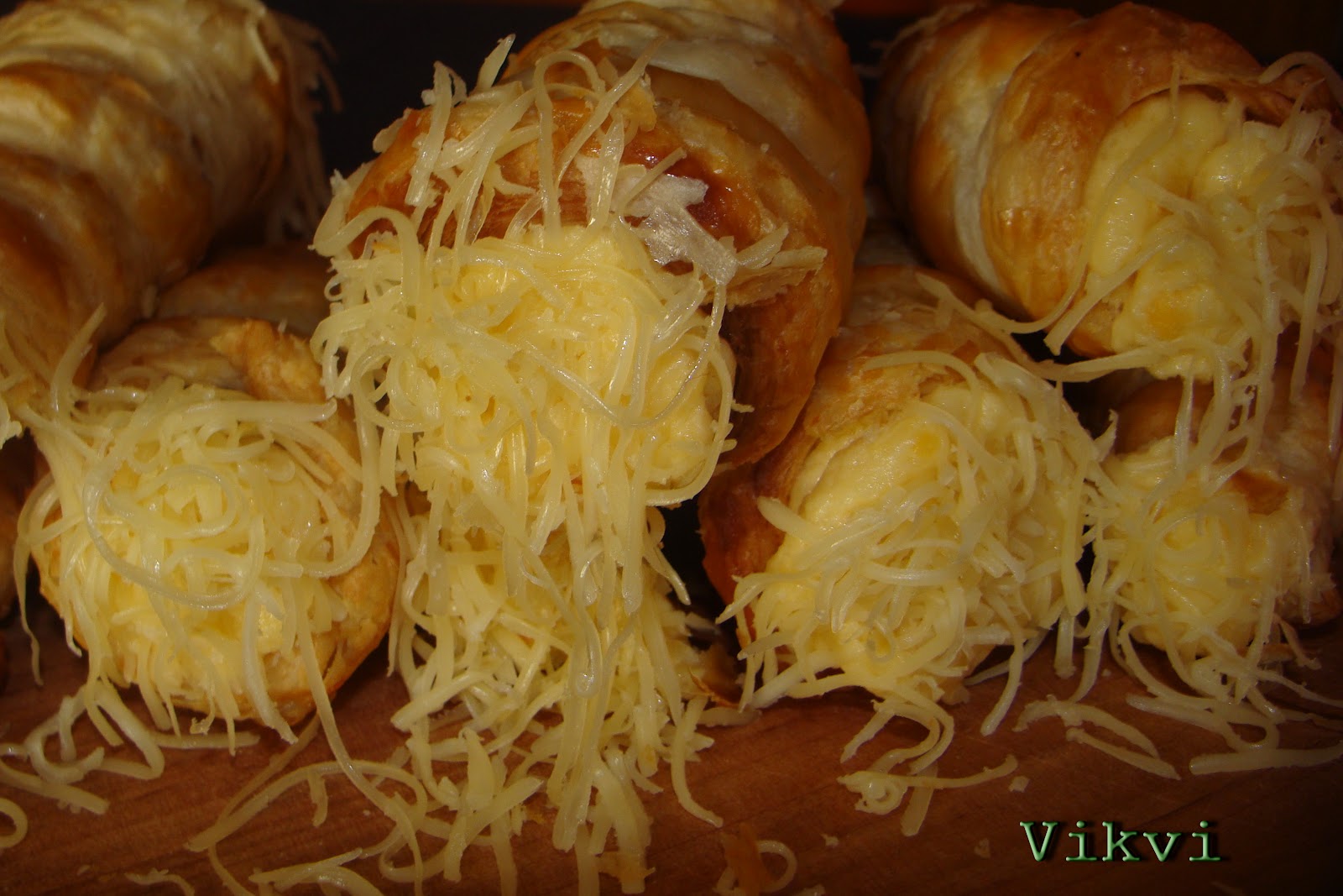 A tésztát kinyújtom, téglalap alakúra, lekenem egy egész tojással, majd centi szélesre darabolom. Feltekerem a roló formákra. (én a formáimat 100 forintos boltban vettem, 800 ft volt a 12 db-os csomag) Kicsit állni hagyom a tésztát úgy 10-15 percet. Ez fontos, mert az első adagnál, nagylegénykedtem és nem vártam azon nyomban betettem a sütőbe. Nem lettek szépek, elváltak itt ott. Viszont a másodiknál amikor állni hagytam, szép formás rolókat kaptam. 200-220 fokos sütőben sütjük, amíg szép aranyszínűek nem lesznek. Levesszük még forrón a formáról. Volt amelyik kicsit nehezebben jött le azon csavartam kicsit és már csúszott is le róla.