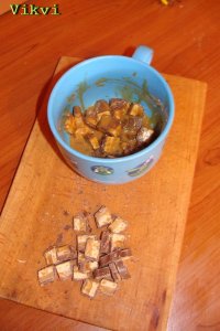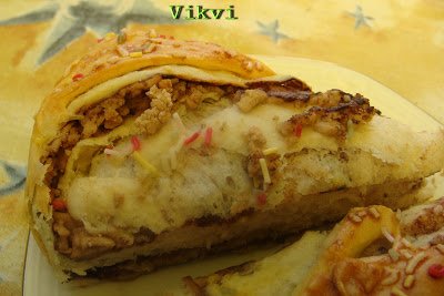 A tejet meglangyosítottam, hozzáadtam a cukrot és a sót, majd beletettem az élesztőt, és hagytam felfutni. Ezután hozzáadtam a liszthez. Elkevertem kidagasztottam a tésztát, hozzáadtam a vizet, egy jó lágy tésztát kell kapjak. Majd 3 gombócra szedtem. A vajat megolvasztom, majd elkeverem az olajjal.