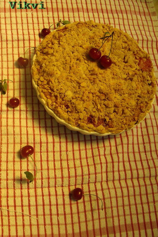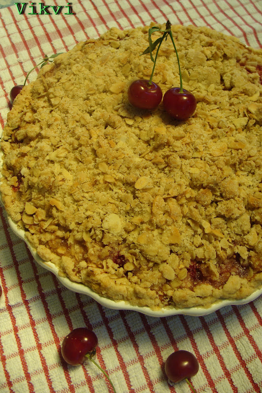 Meggyes pite zabpelyhes – mandulás morzsával: