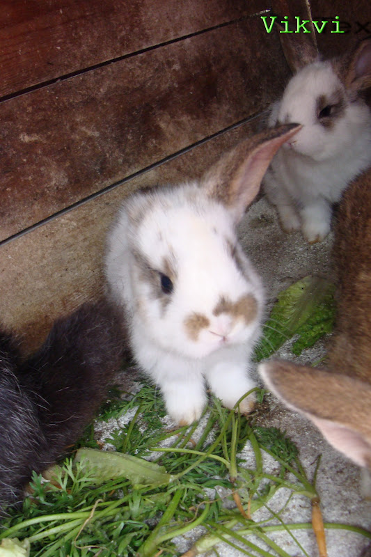 Nagyon cuki a kis egyfülű, de még a nézése is olyan kis kedves:) Látom szeretik a zöldet rágcsálni.