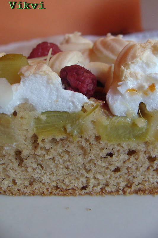 Végre sikerült, olyan rebarbarás süteményt készítenem, ami ízlett a Férjemnek. A titkok nagymama konyhája című szakácskönyvben találtam. Nekem nagyon ízlett, főleg a tésztája, finom fűszeres. Gyerkőcöknek a hab a tetején ízlett igazán. Szóval mindenkinek volt valami kedvence benne.Én dobtam bele pár szem málnát is, de eredeti recept szerint csak rebarbarás a torta.