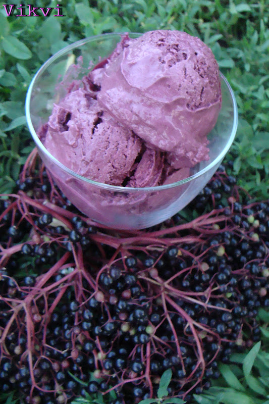 Már év elejétől terveztem, hogy ki fogom próbálni idén a bodza bogyót is. Hát eljött a nagy alkalom, fagyi is készült belőle. Nagyon finom íze lett, a színe pedig fantasztikus!!!! A kép meg sem közelíti a valódi, sötét lila színt. De hiába próbálkoztam a gép egyik funkciója sem hozta vissza a valódi szépségét. Bár szerintem így is jól mutat. Készült még a hétvégén, ringlószilva fagyi, banán és puncs is.