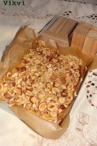 A vizet a cukorral felforralom, hogy a cukor teljesen olvadjon el, majd hozzáadom a mogyorót és pár percig főzöm. Én plusz ízesítést nem adtam hozzá, de esetleg elbír egy kis fahéjat, citromot.