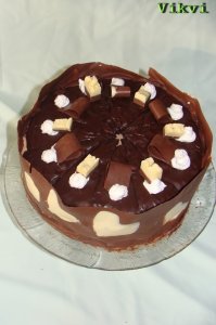 A Férjem teljesen beleszeretett a rigójancsiba Karácsonykor. Így gondoltam meglepem szülinapjára egy tortával. Sőt gondoltam még csokigallért is teszek köré. Meg kell mondjam, kicsit húzós a csokigallér készítése, de megérte. Mondjuk lehetett volna annyi eszem, hogy nem rögtön egy 26 cm-es tortának esek neki, hanem valami kisebbet kipróbálom a technikát. Tökéletes nem lett, de szerintem első próbálkozásnak jó volt.