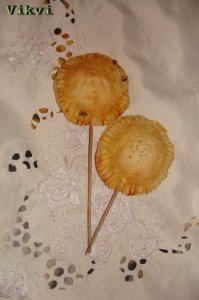 A megmaradt csíkból, téglalapokat vágtam és a végén összefogtam, hogy csepp alakú legyen. Ezt is a hűtőbe tettem, majd miután megszilárdult, lehúztam a papírt róla és meg is volt a díszítés a tetejére.
