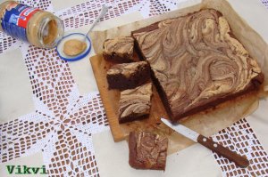 Utólag úgy gondolom ez a tepsi méret elbírt volna még egy csomag pudingport, tehát az arány 3 csomag + 1,5 l tej.
