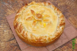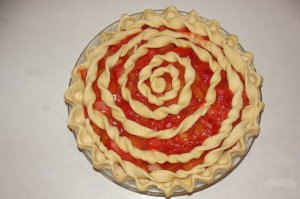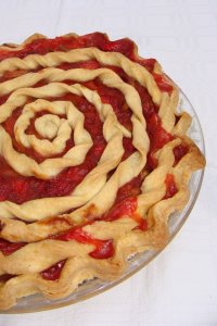 A lisztet elkeverem a cukorral, az étkezési keményítővel. Elmorzsolom a margarinnal, majd a tojással jól összegyúrom. Ha szükséges adok hozzá egy kis hideg vizet. 30 percre a hűtőbe teszem. Majd lisztezett deszkán kinyújtom, és a 26 cm-es kapcsos torta forma alsó részén (kivajazom) kisütöm 200 fokon 10-15 percig.