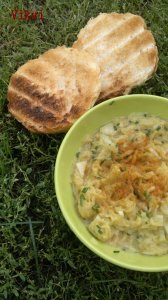 Az almát és a rebarbarát egy fazékba teszem, adok hozzá, cukrot, és fahéjat, valamint némi vizet. Elkezdem fedő alatt párolni, majd mikor már levet eresztett, keverek rajta egyet vigyázva, hogy ne törjön össze az alma. Kicsit hagyom puhulni. A pudingport kikeverem a vízzel, majd az almára öntöm és besűrítem vele. Hagyom teljesen kihűlni.