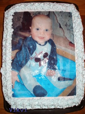 Lalikának, a keresztelőjére készült ez a torta, sógornőm kisfia, hat héttel fiatalabb mint Kis B. Előre, megrendeltem az ostyaképet, zselét is kaptam hozzá, meg volt még abból amit Szegeden vettem.