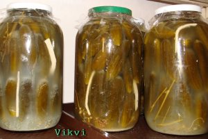 Az üvegbe belerakjuk a szőlőt, kaprot és 2 db tormát ( a többit az uborka közé szúrkodjuk), belepakoljuk az uborkát. Ahány literes az üveg annyi csapott kanál só. Teszünk rá még egy 3/4 zacskó nátrium benzonátot (nem lesz szottyos az uborka), felöntjük vízzel. Félig feltekerem rá a kupakot, tálcát teszek alá mert forrni fog és ki fog bugyogni. Elkezd zavarosodni, majd szépen leülepszik, ez kb 1 hét, ezután lesz még egy kis munka vele. Tenni kell bele egy kis kénport késhegynyit, fóliát és rendesen le kell zárni, majd összerázni. Fejjel lefelé fordítani. Utána a helyére lehet tenni, a tálcát ne felejtsük el elmosni, mert nagyon büdös tud lenni már egy hét alatt is.